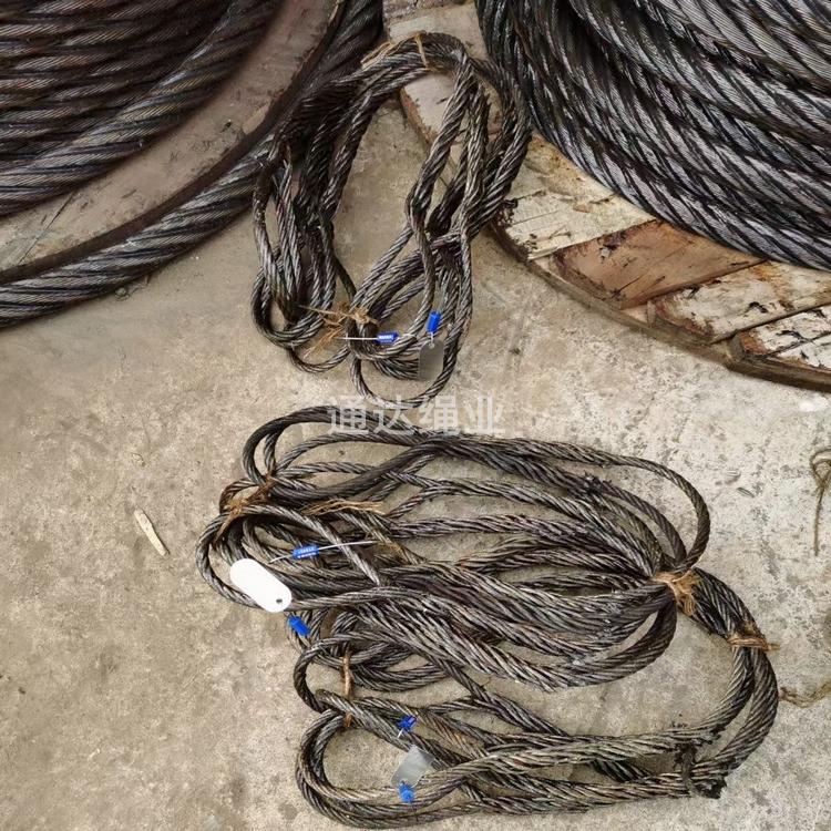 鋼絲繩索具主要用在吊運,拉運等需要高強度線繩的運輸中,在使用過程中被吊物下嚴禁站人或在物體上經過。